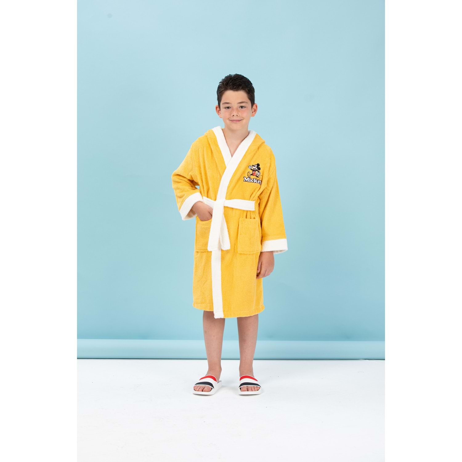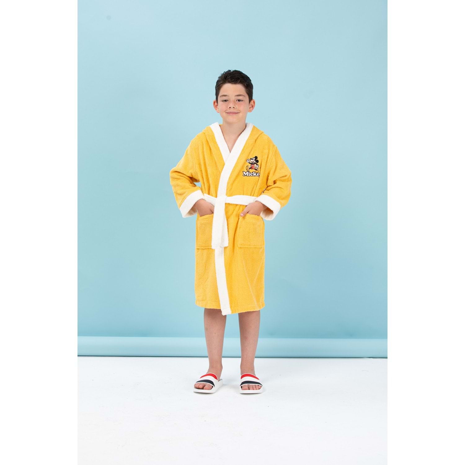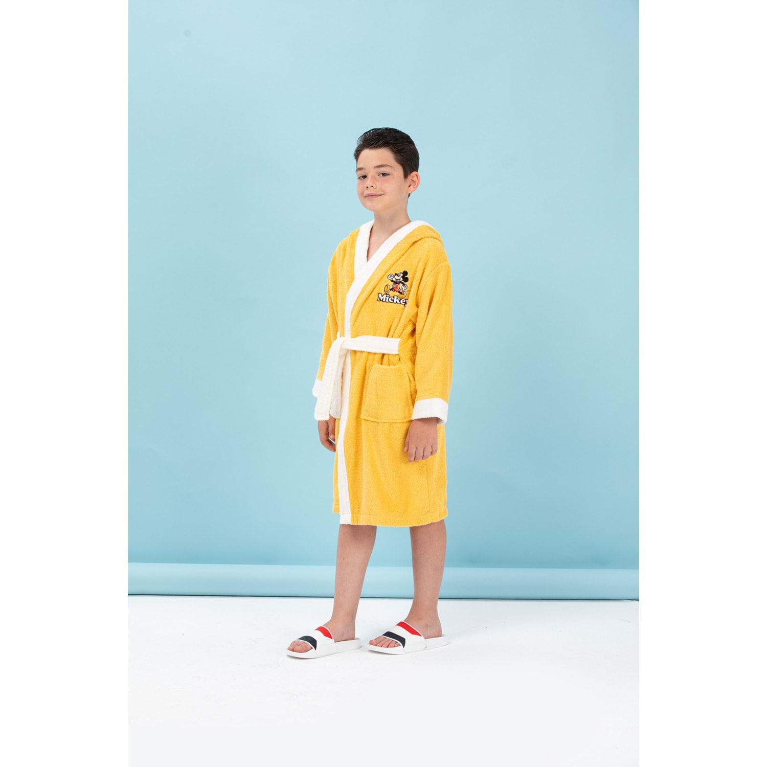 Özdilek Mickey Mouse Happy Nakışlı Disney Lisanslı Kapüşonlu Çocuk Bornozu