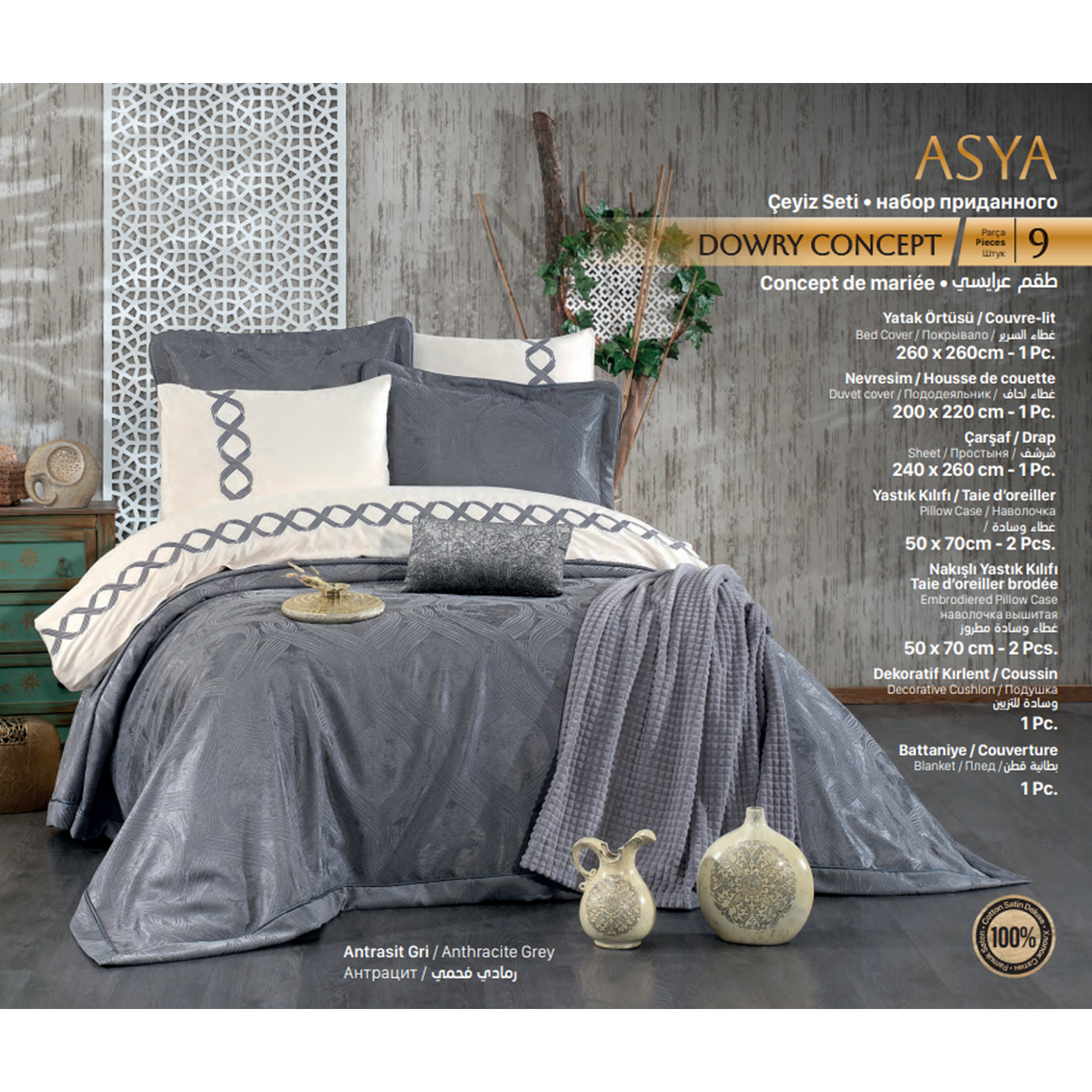 Güzide Ev Modası Çeyiz Paketi Asya Antrasit