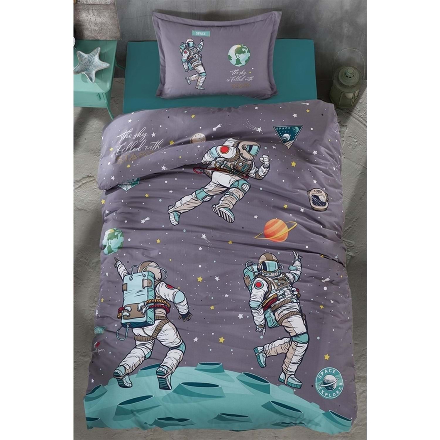 Clasy Genç Nevresim Takımı Tek kişilik Space V1 Antrasit