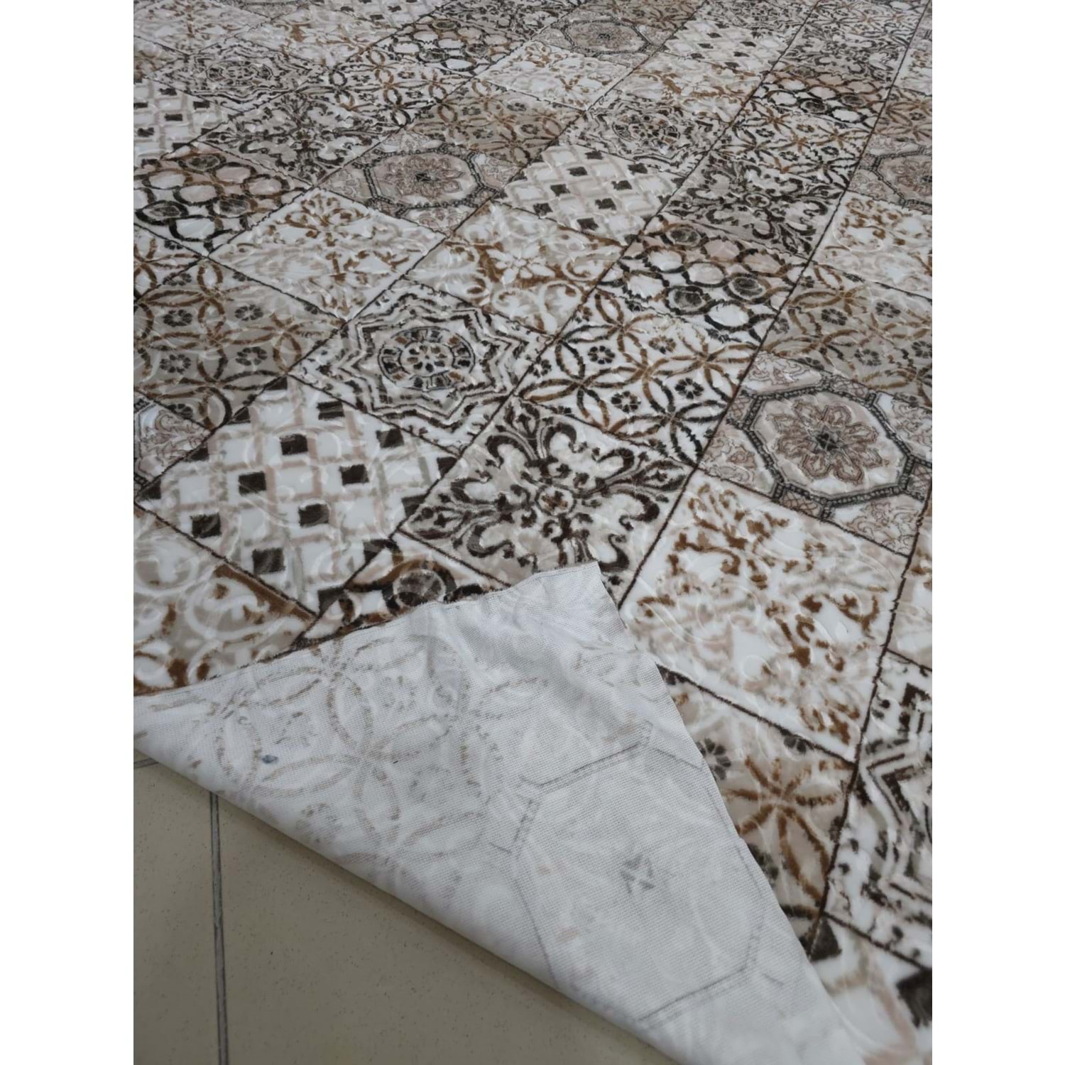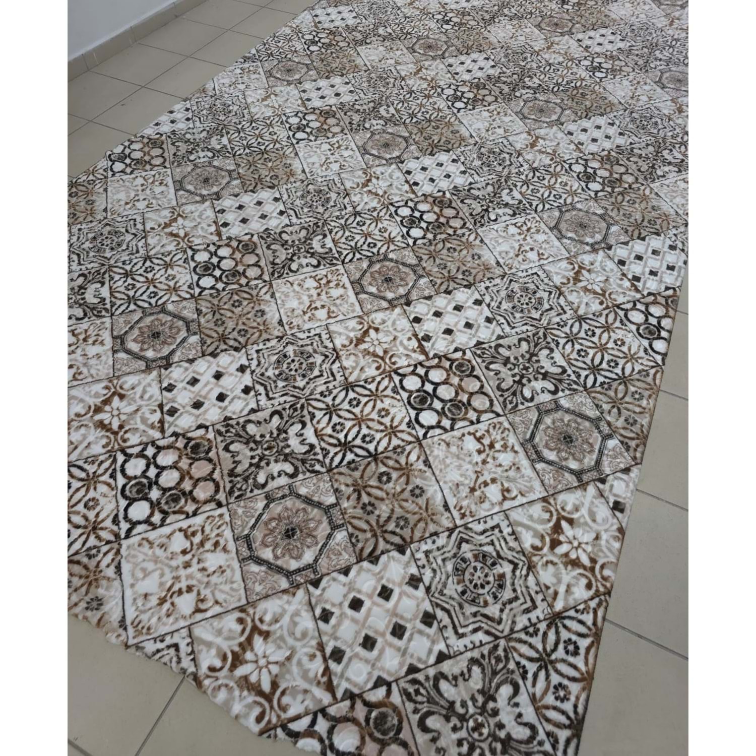 Turan Mefruşat Dinarsu Lastikli Halı Örtüsü Beylem Kahve 150X233