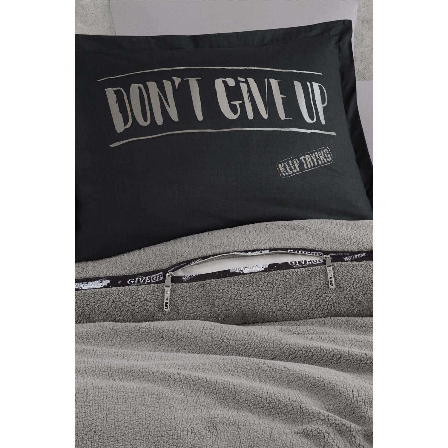 Fermuarlı tasarımı sayesinde hem nevresim, hem battaniye hem de yatak örtüsü olarak kullanılabilir.