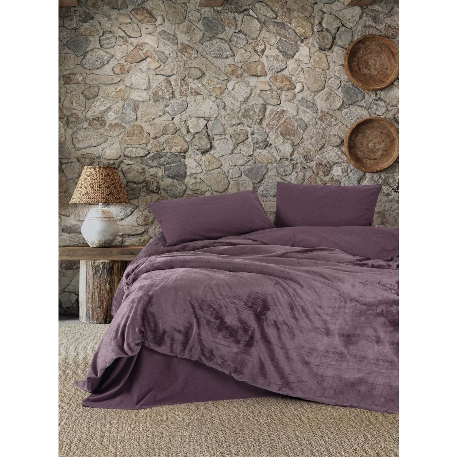 Cotton Box Velvet Çift Kişilik Nevresim Takımı Flossy Mürdüm