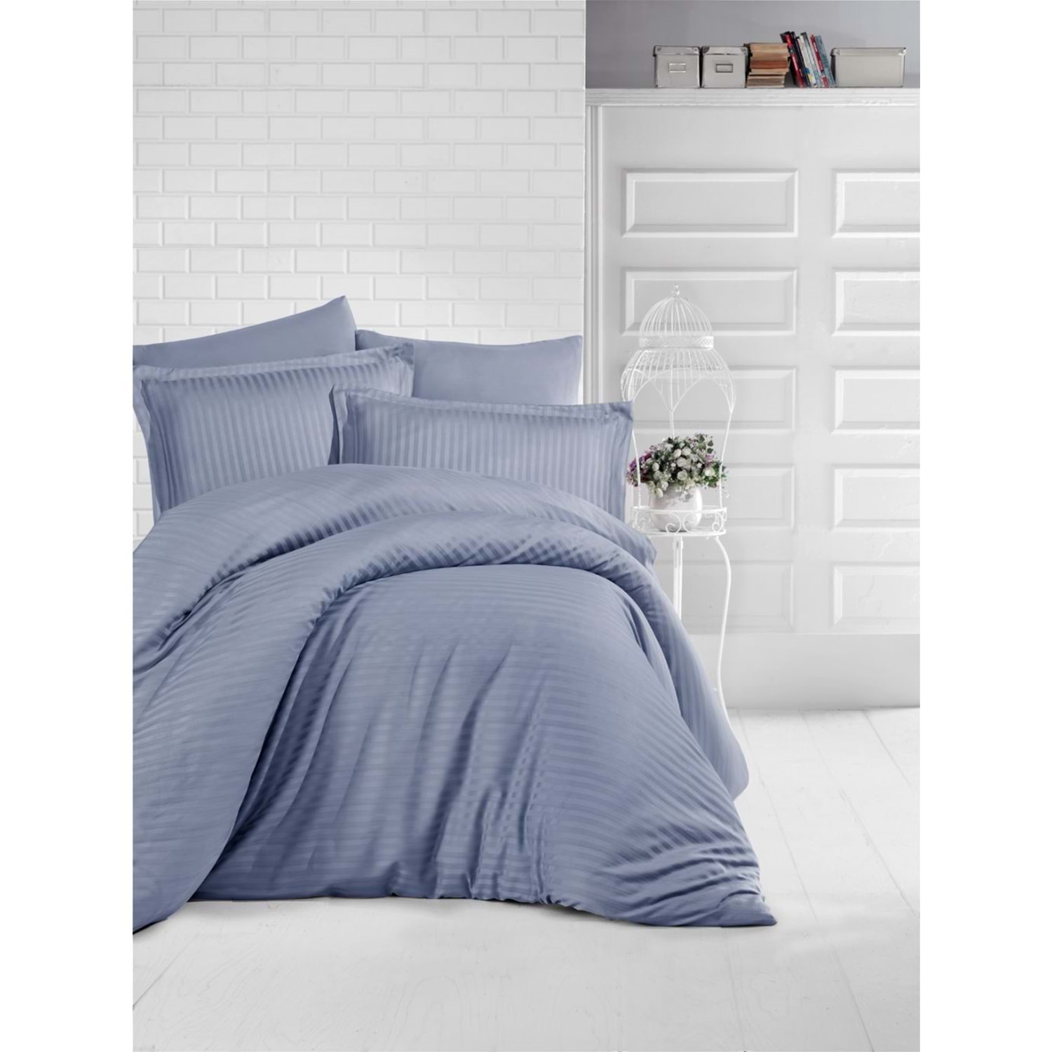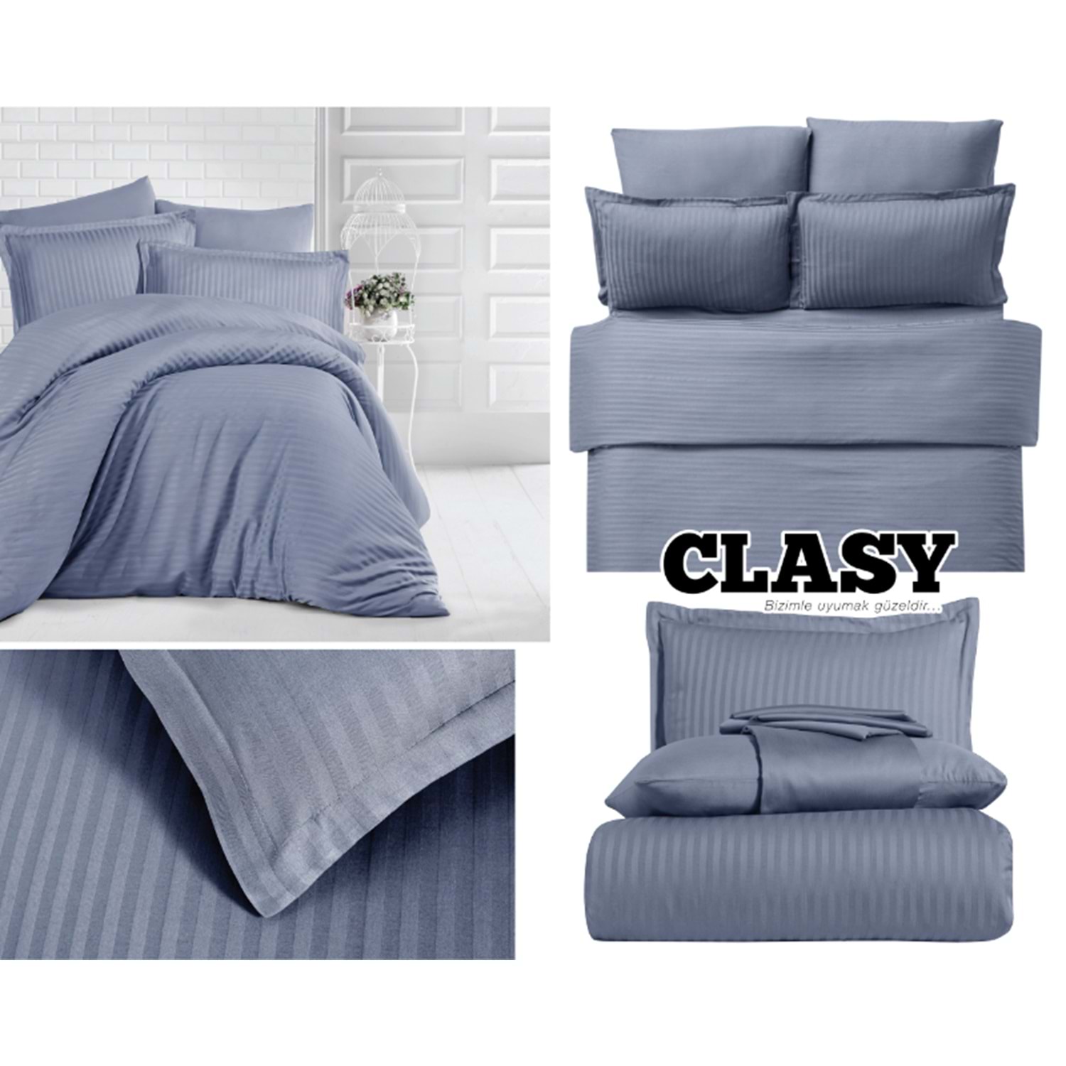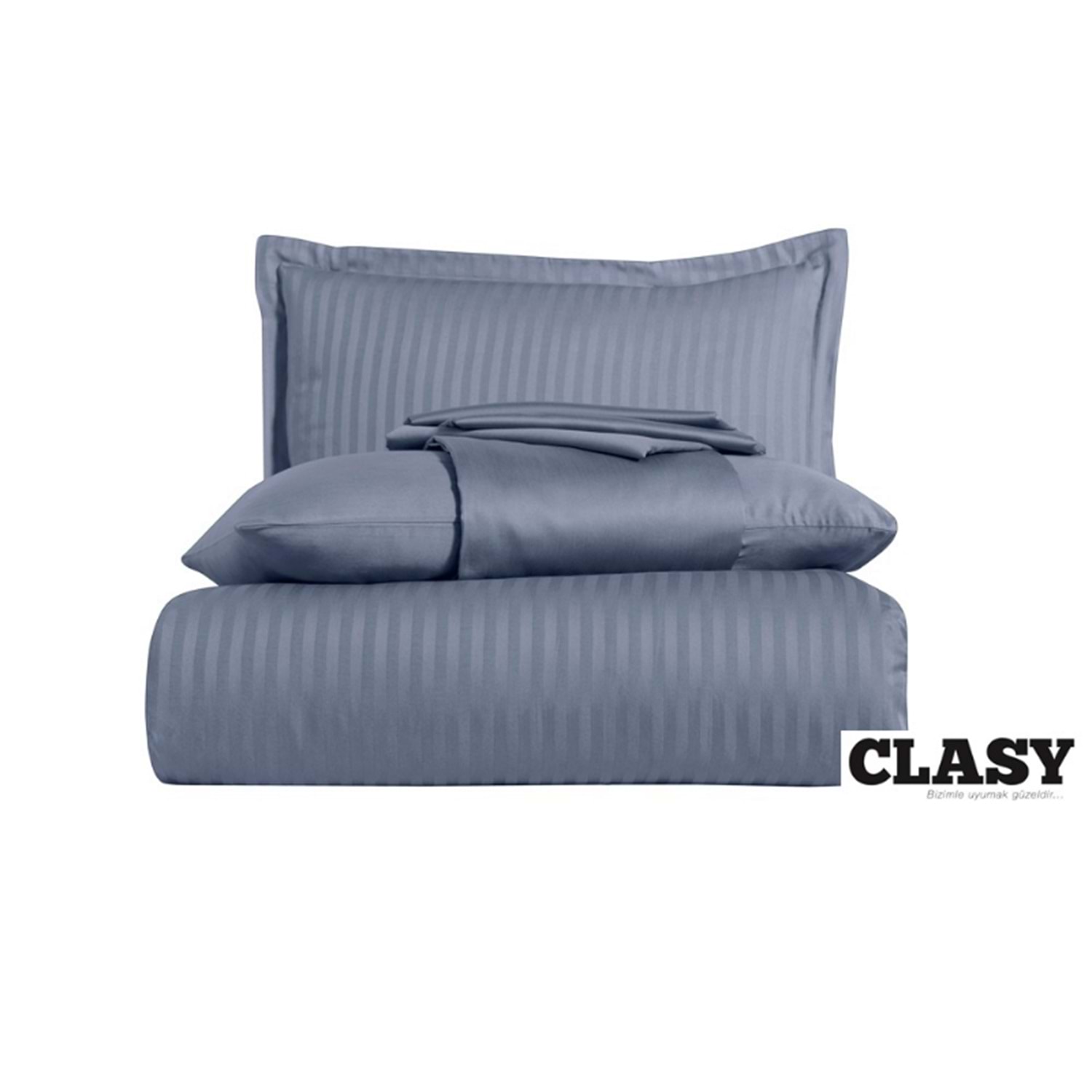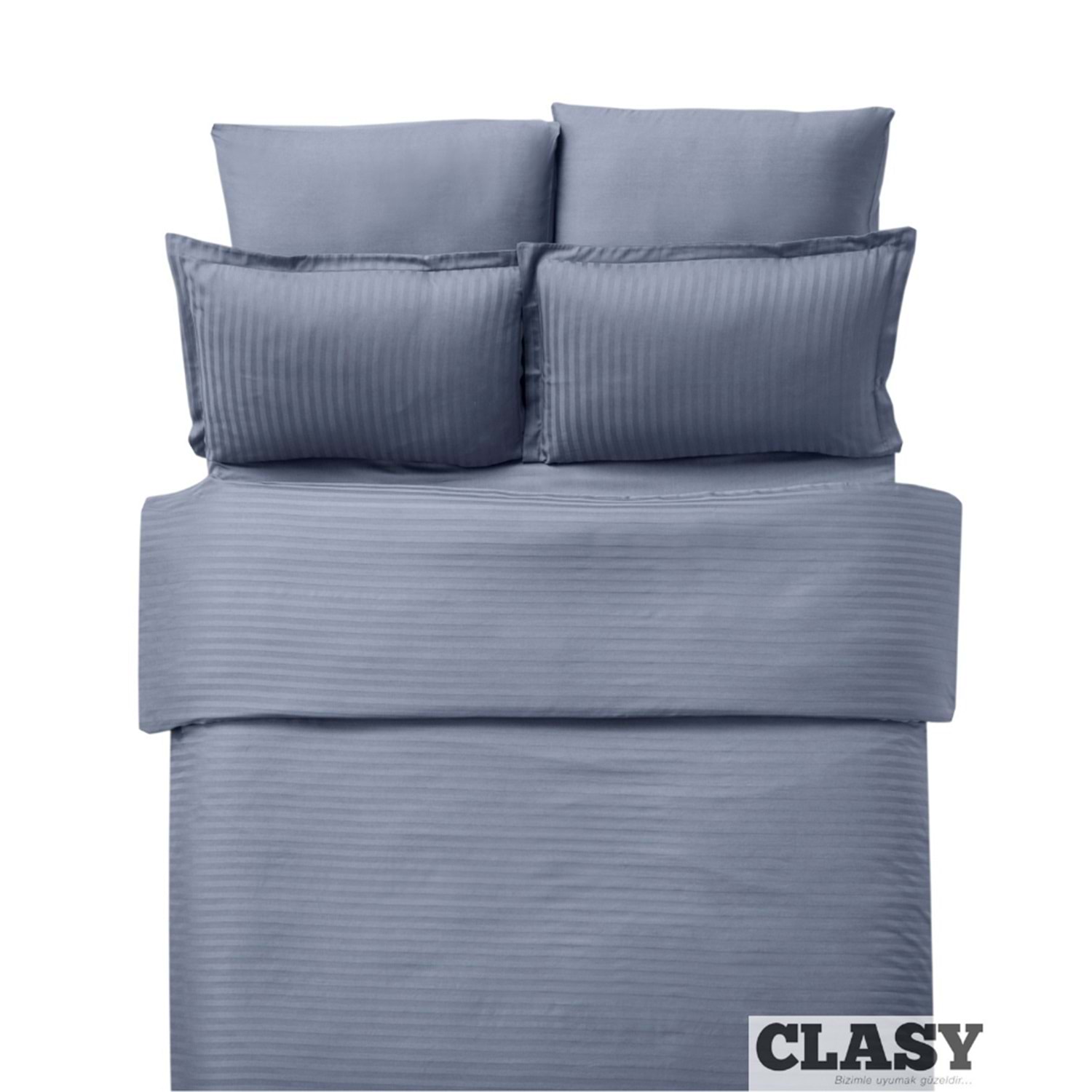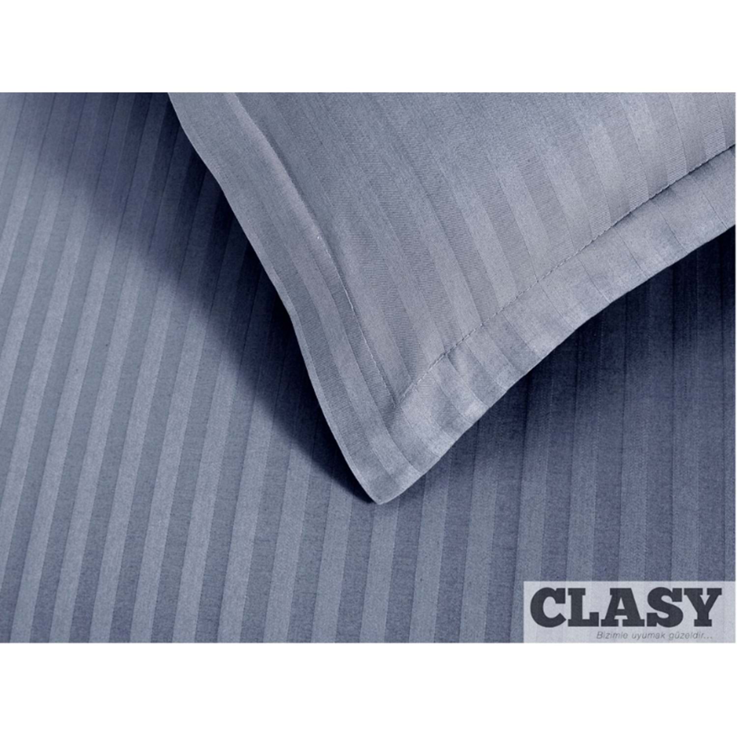 Clasy Çizgili Saten Çift Kişilik Nevresim Takımı Antrasit