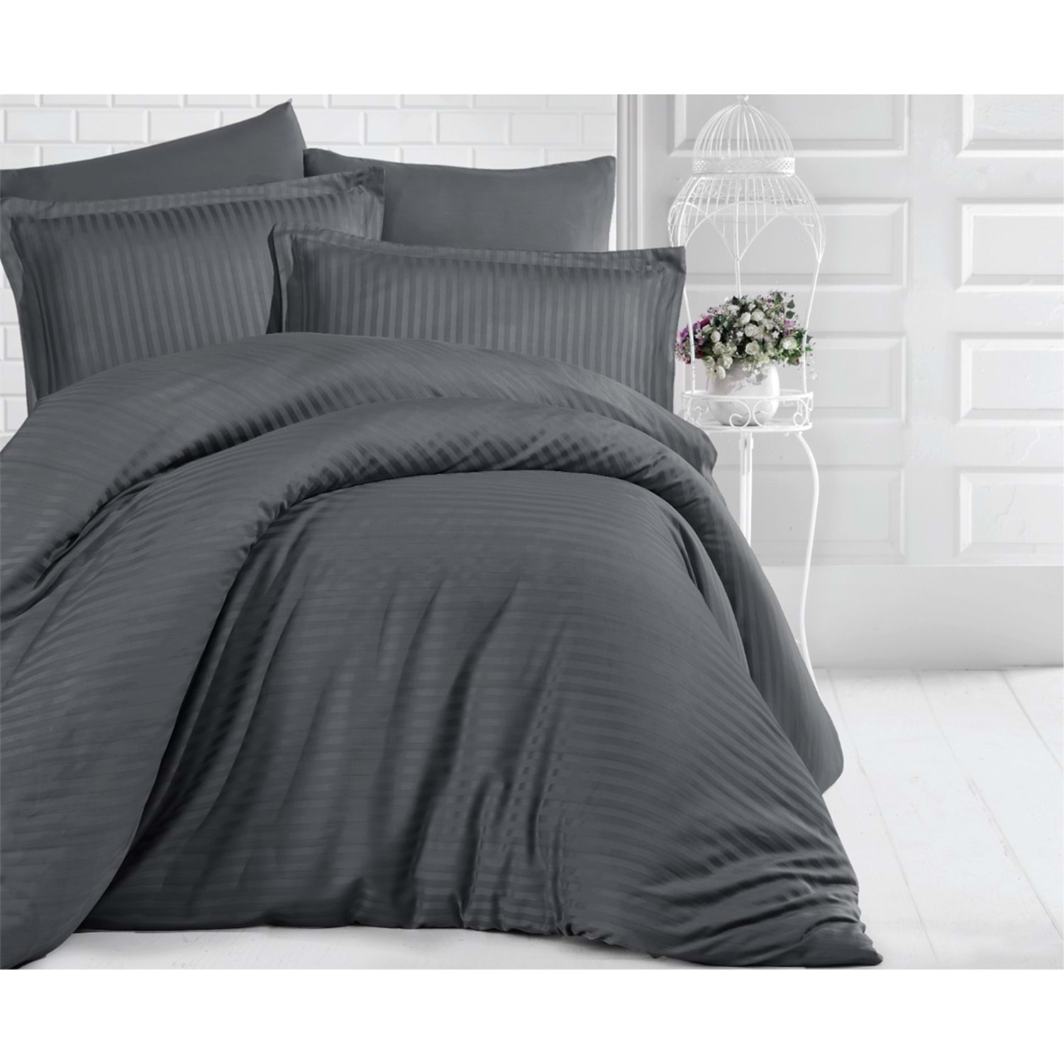 Clasy Çizgili Saten Çift Kişilik Nevresim Takımı Düz Renk Füme