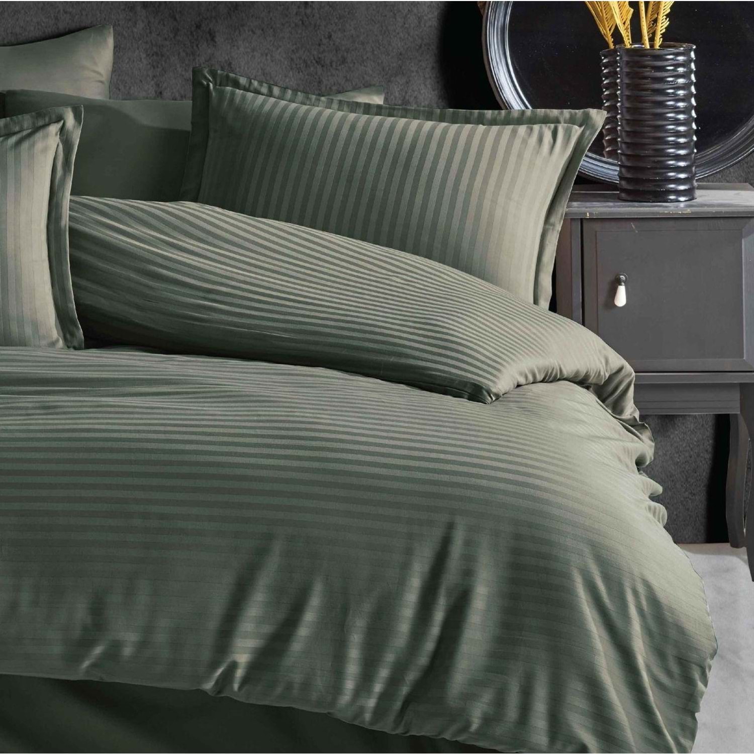 Clasy Çizgili Saten Çift Kişilik Nevresim Takımı Haki