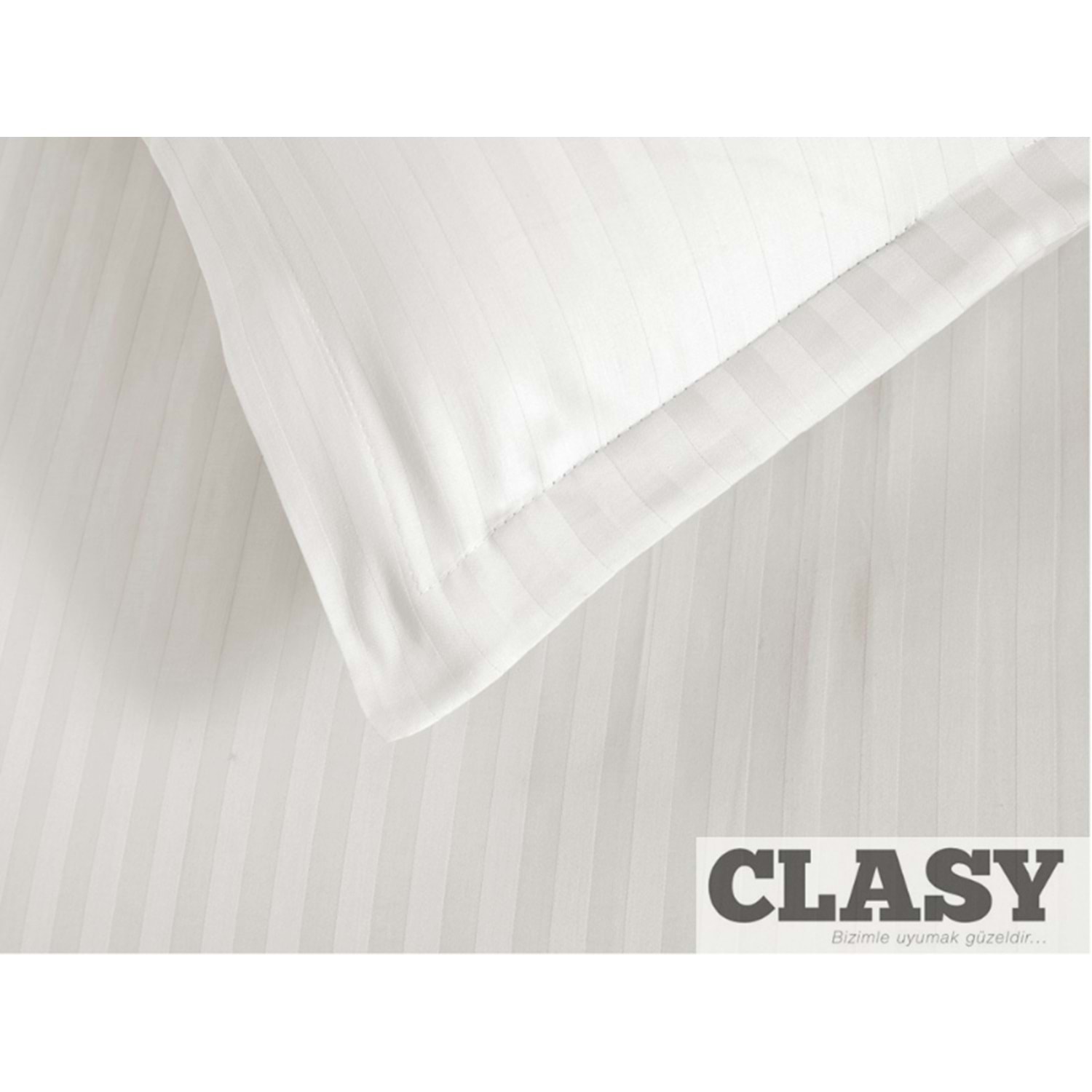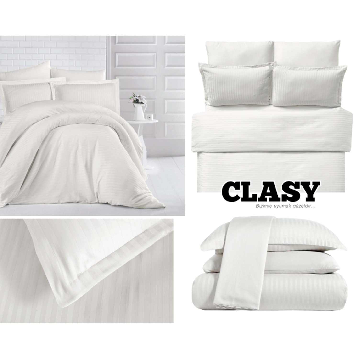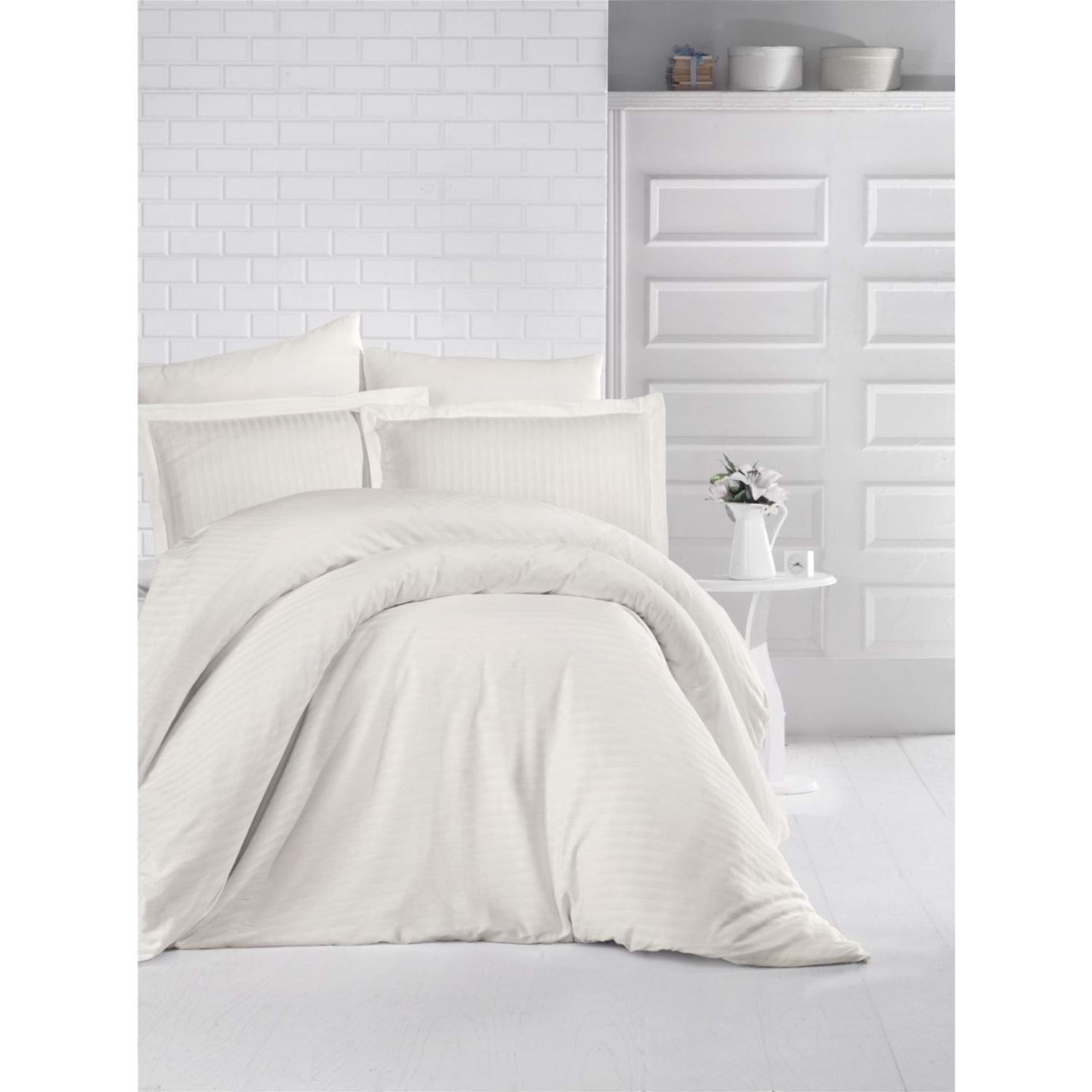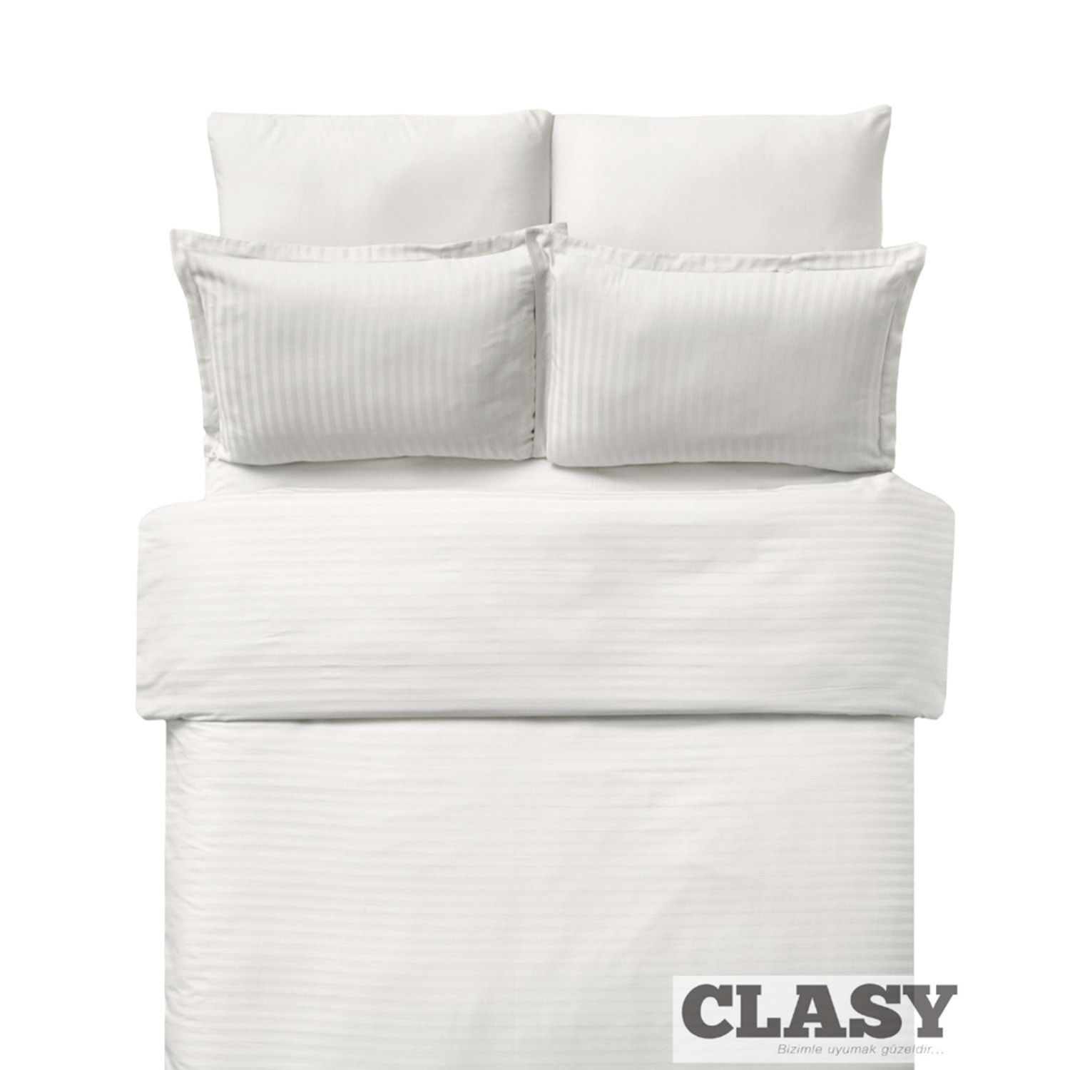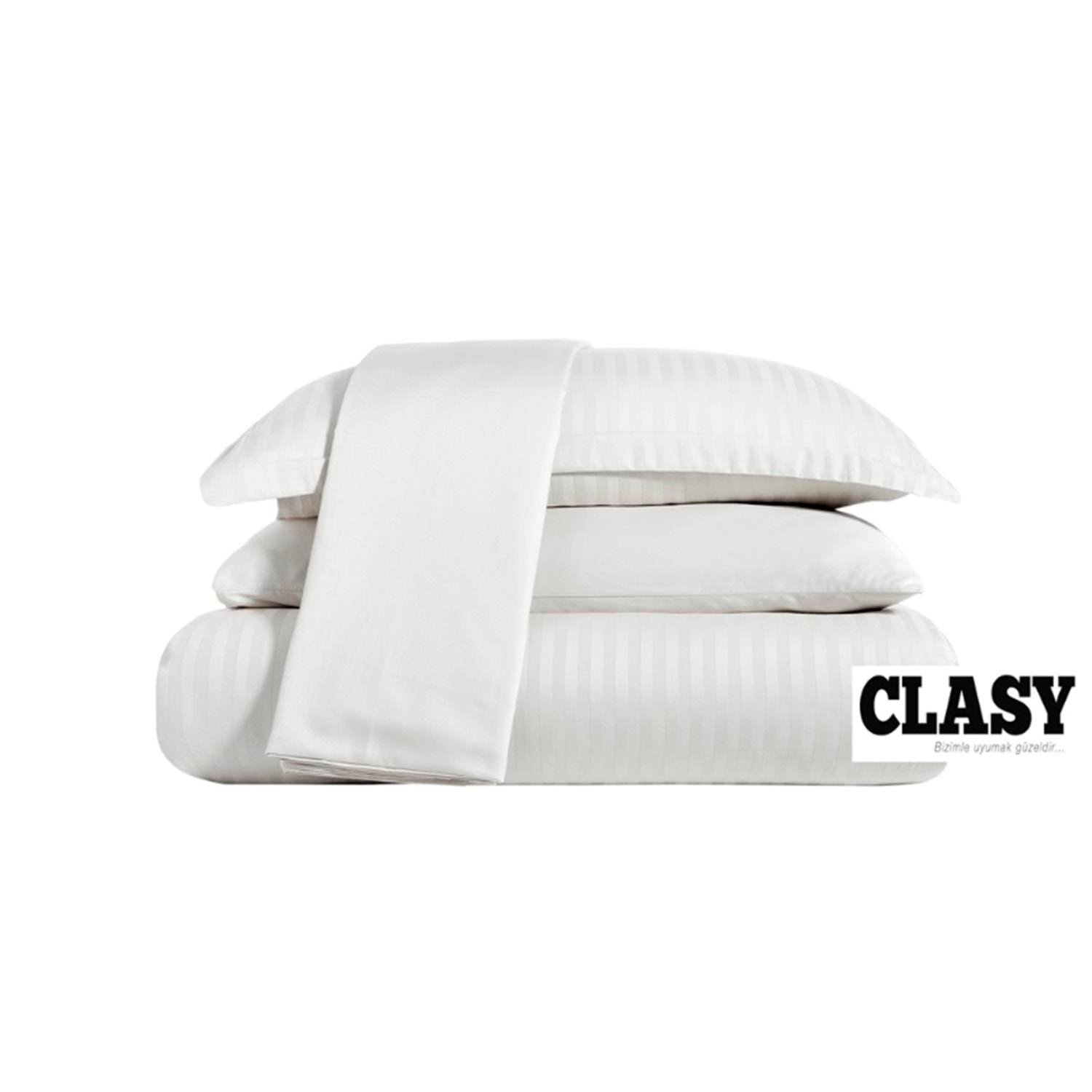Clasy Çizgili Saten Nevresim Takımı Çift Kişilik Ekru