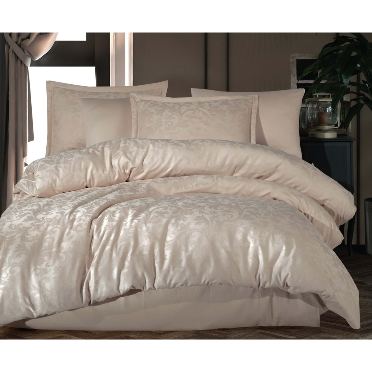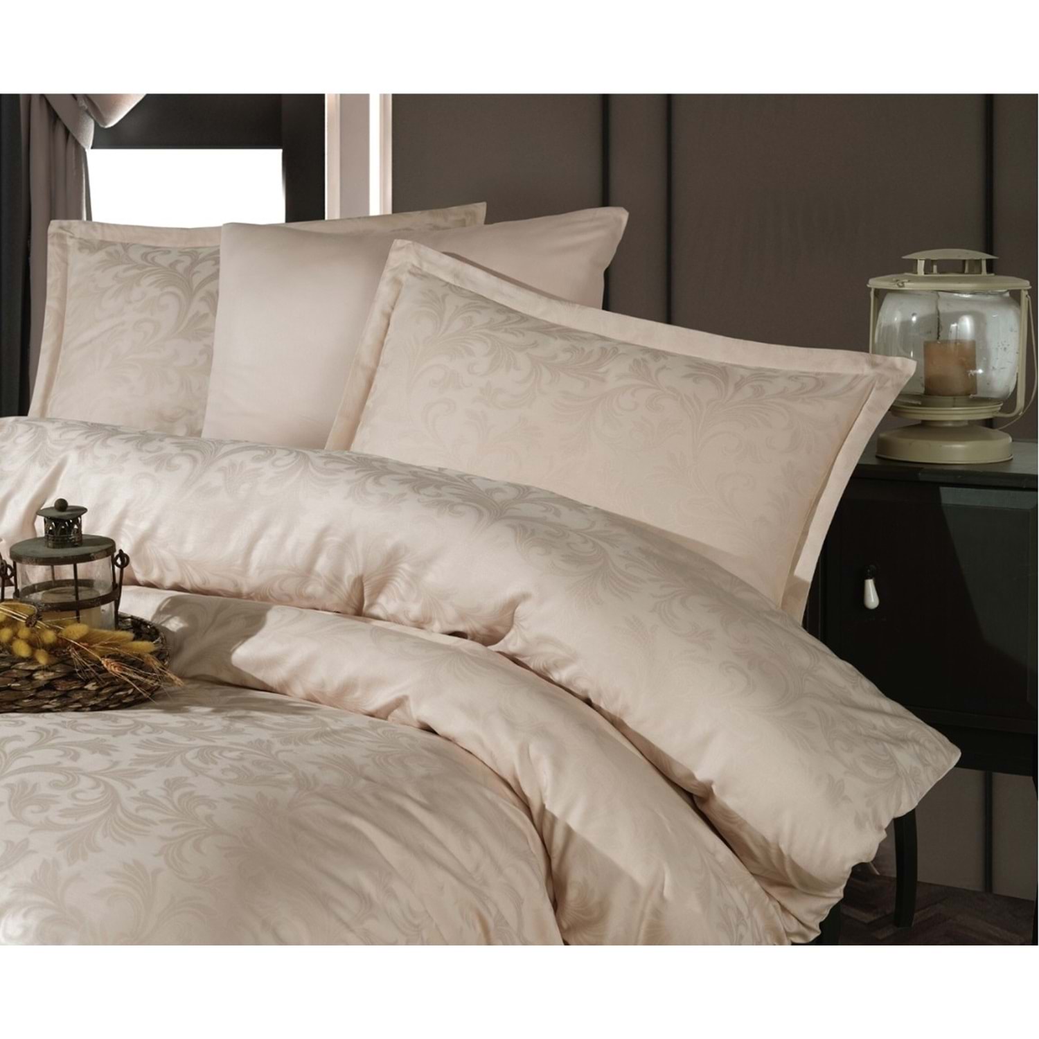 Clasy Jakarlı Pamuk Saten Çift Kişilik Nevresim Takımı Payava Krem