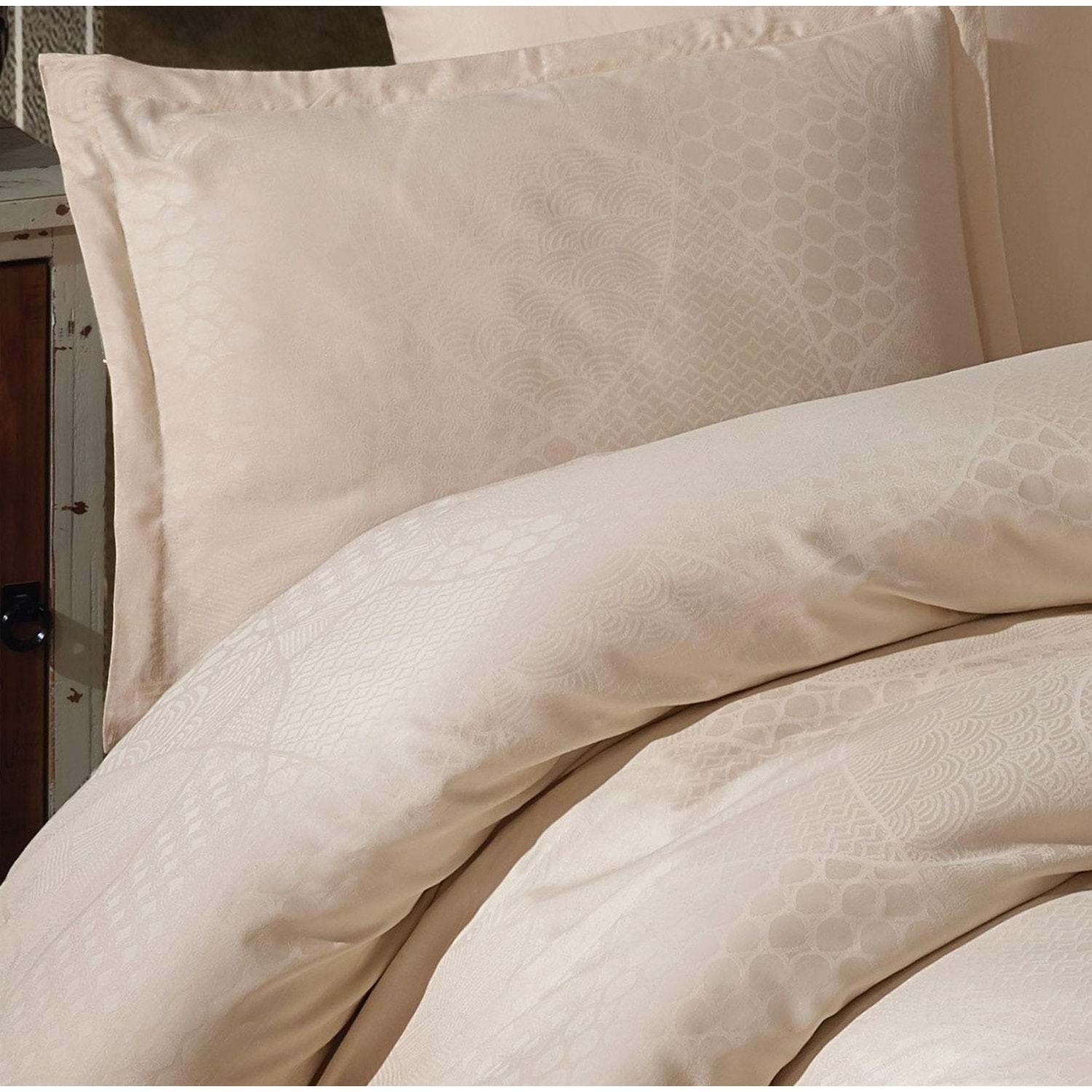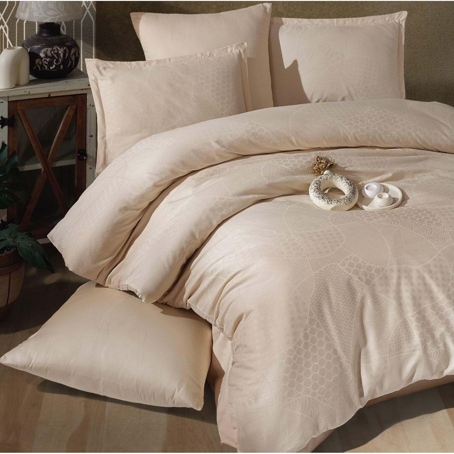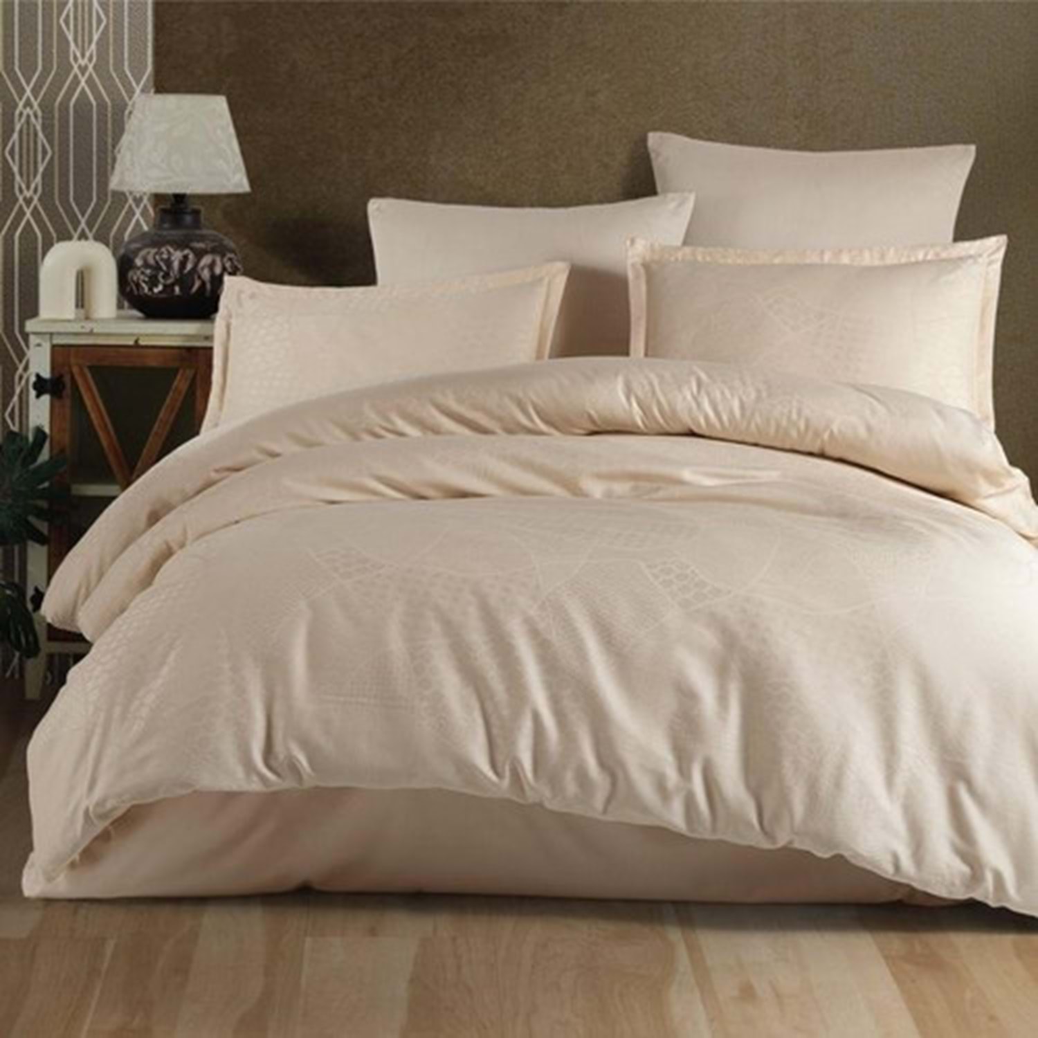 Clasy Jakarlı Saten Çift Kişilik Nevresim Takımı Mandarin Bej