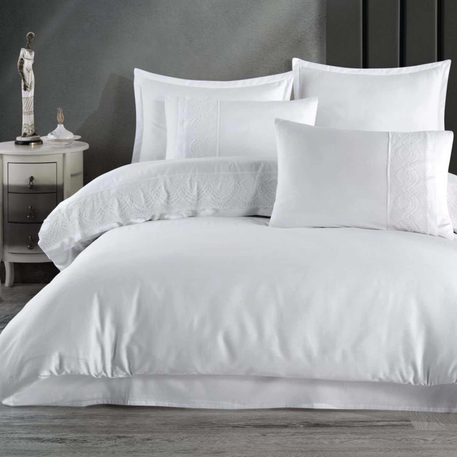 Clasy Saten Çift Kişilik Nevresim Takımı Butik Serisi Valinor Beyaz