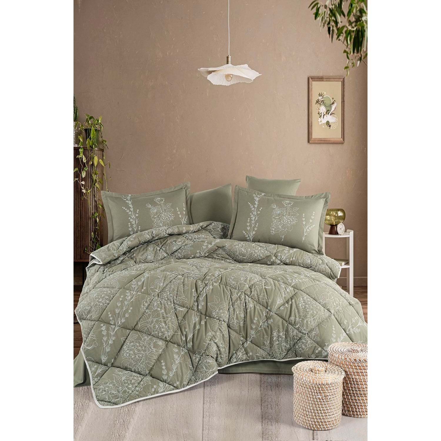 Clasy %100 Pamuk Çift Kişilik Uyku Seti Vinya Yeşil